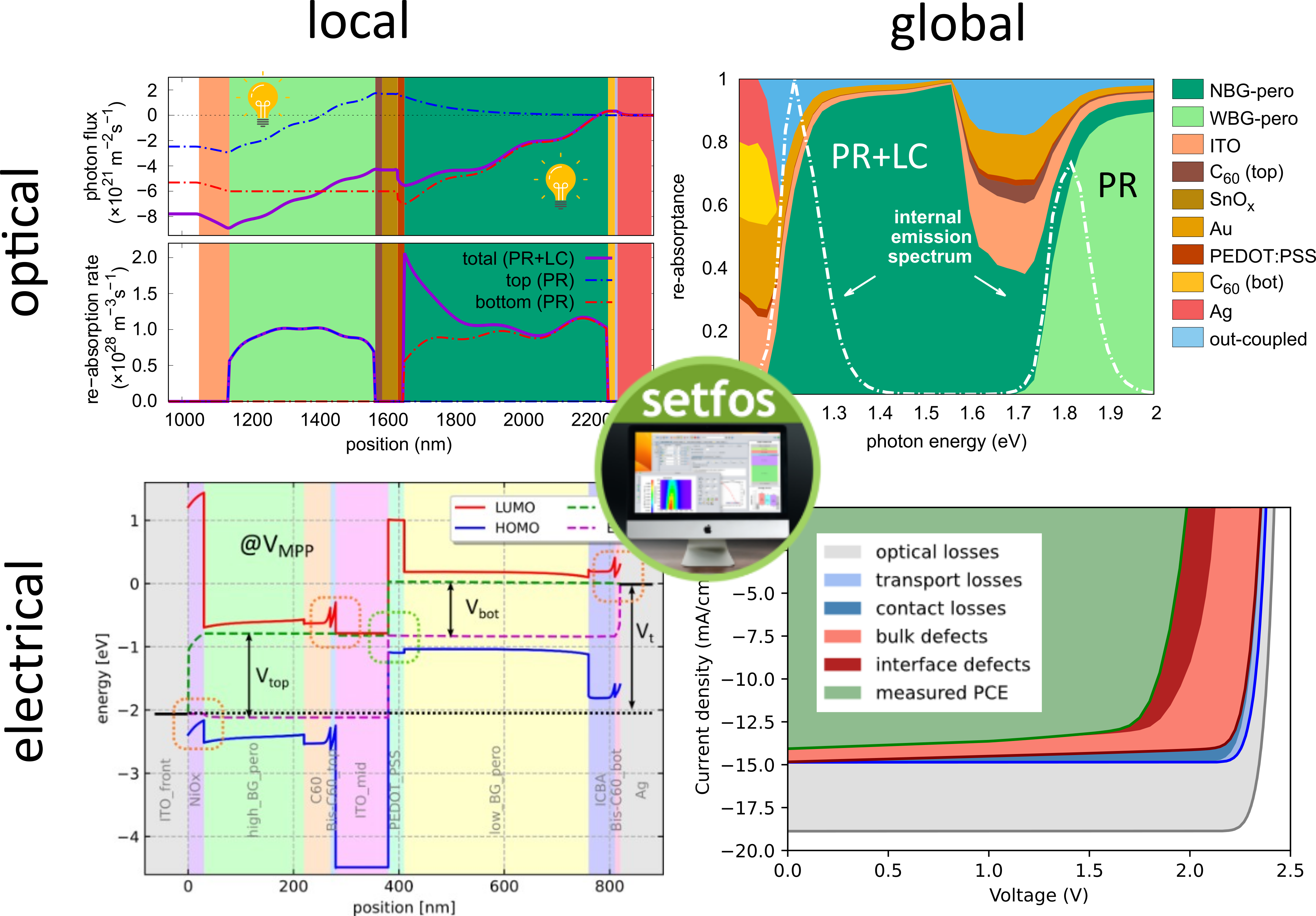 [1] S.J. Zeder, B. Blülle, B. Ruhstaller, U. Aeberhard, “Optimizing perovskite LEDs and tandem PV cells: The role of photon-recycling and luminescent coupling in presence of strong light scattering”, APL Energy 3, 026110 (2025).